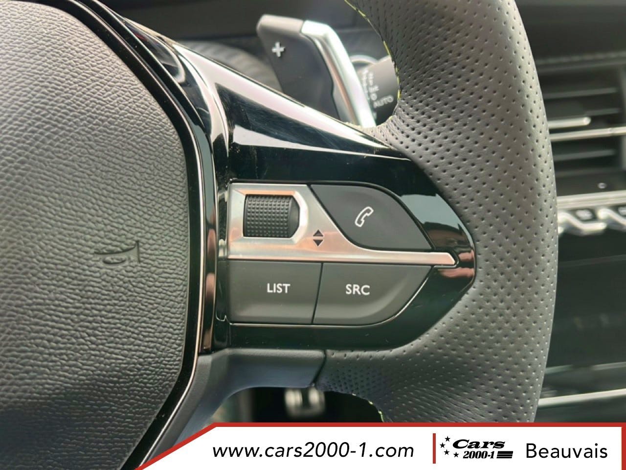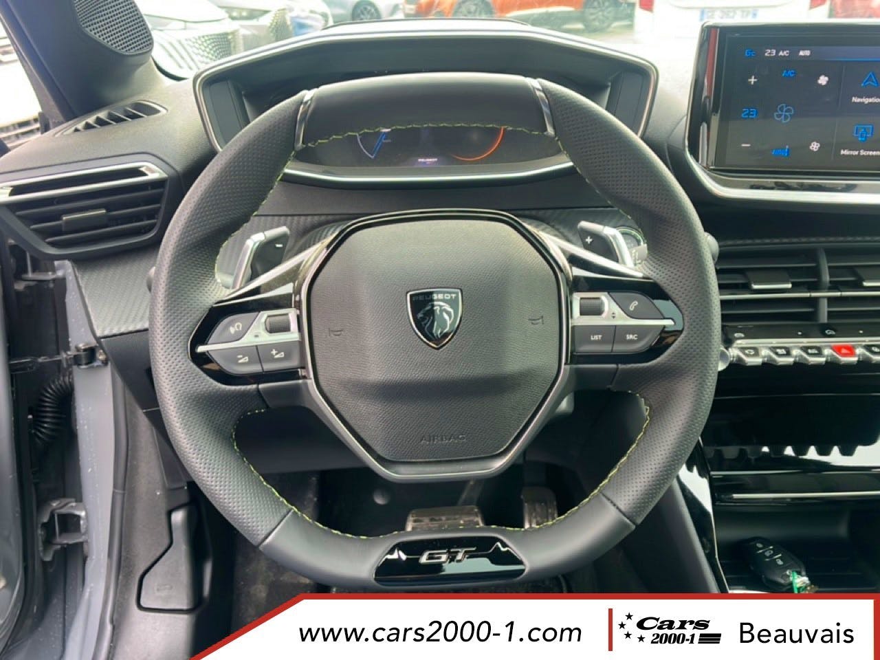Volant compact cuir fleur avec commandes multimedia integrees et badge GT