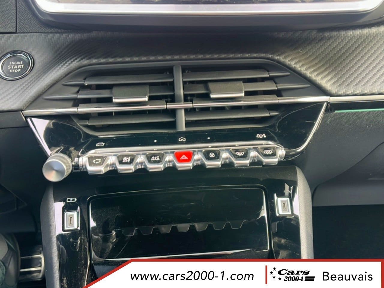 Prise 12V et rangement pour smartphone en facade centrale