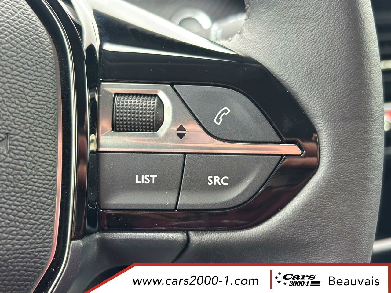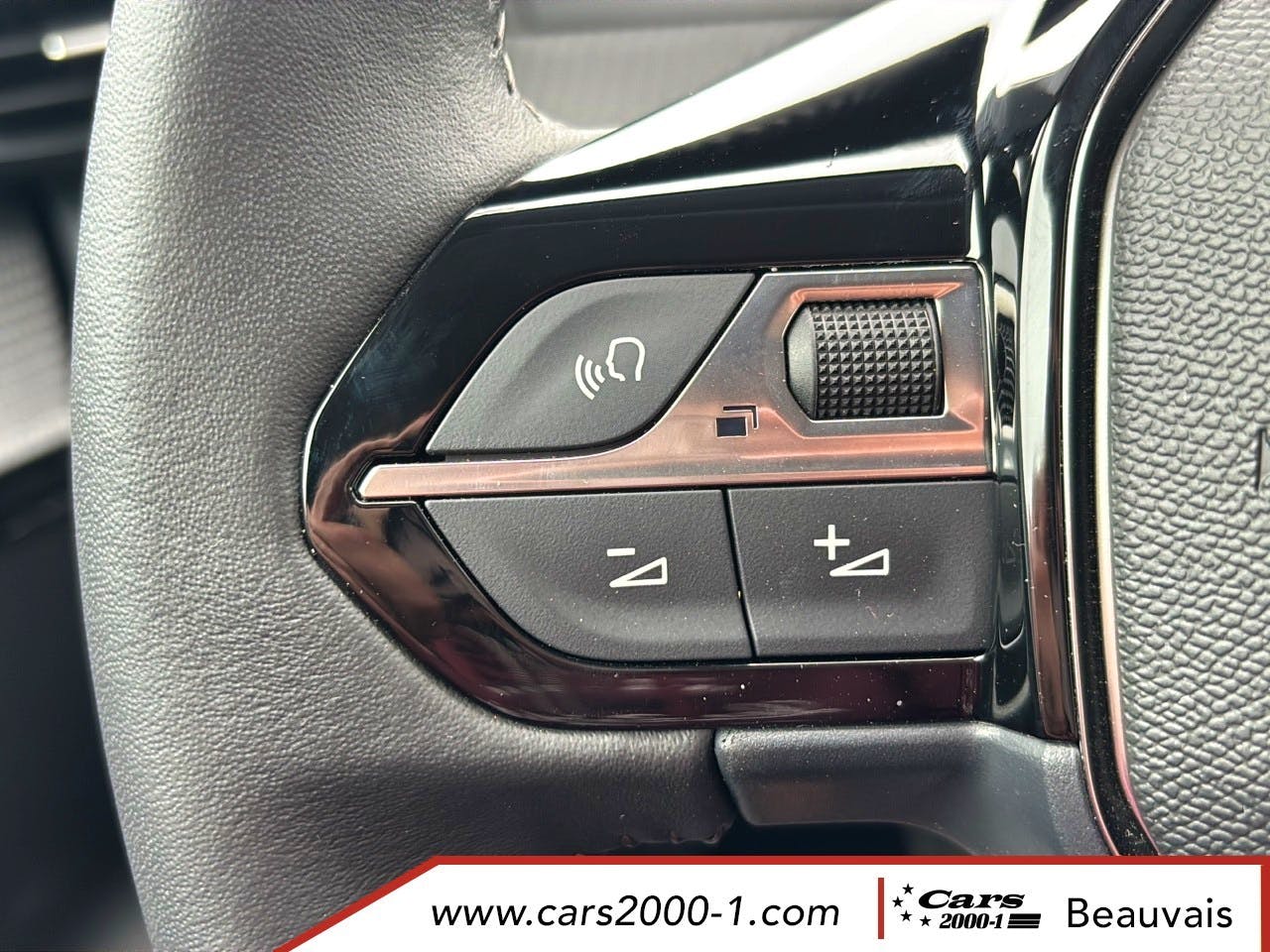 Volant compact croute de cuir, Lion chrome et commandes multimedia sur volant